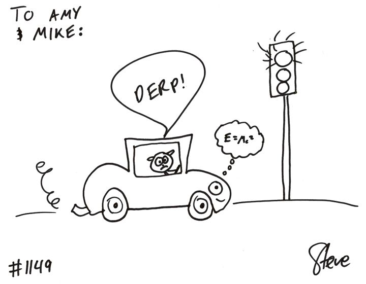 Cat #1149 Posted on August 30, 2011 Amy and Mike wanted their cat, Isabelle, driving a smart car right through a red light. What a stupid gray tabby!