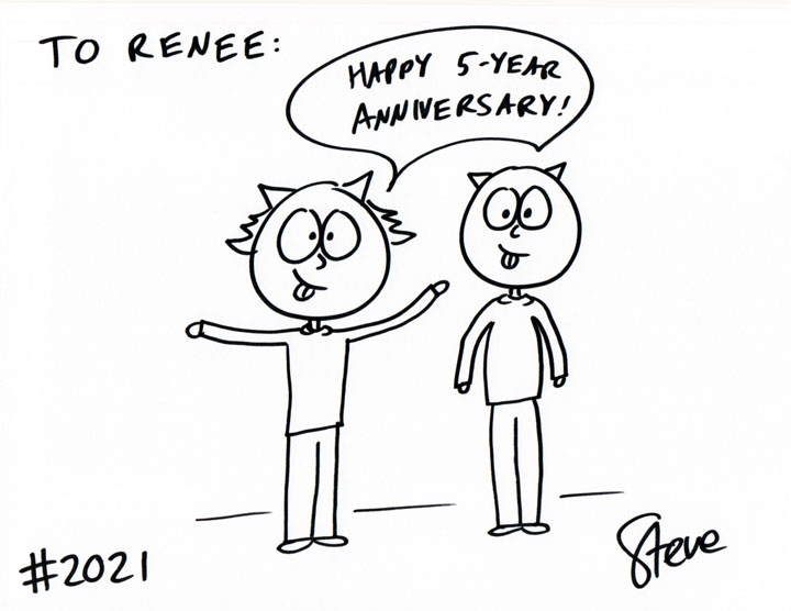 Renee wanted cats celebrating their 5th wedding anniversary.