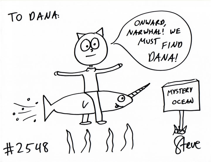 Cat #2548 Posted on February 16, 2012 Dana wanted a cat riding a narwhal whale in the ocean as they search for their friend Dana.
