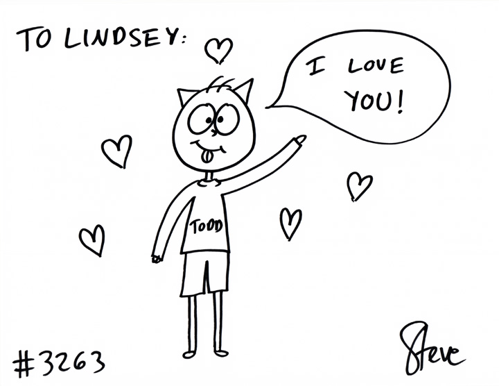 Cat #3263 Posted on March 6, 2012 Todd GIFTED a cat to Lindsey. He wanted a cat named Todd saying, “I love you!”