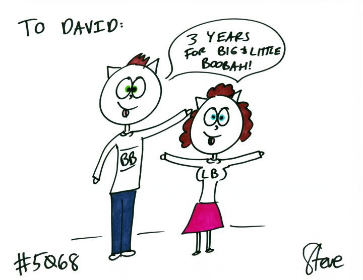 Nicole GIFTED a cat to David. She wanted a man cat named Big Boobah and a lady cat named Little Boobah! They are celebrating their three-year anniversary! They love each other!