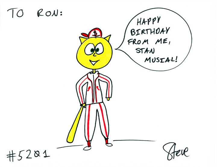 Cat #5201 Posted on May 16, 2012 Stan wanted a Stan Musial Cat to help him celebrate his 70th birthday!