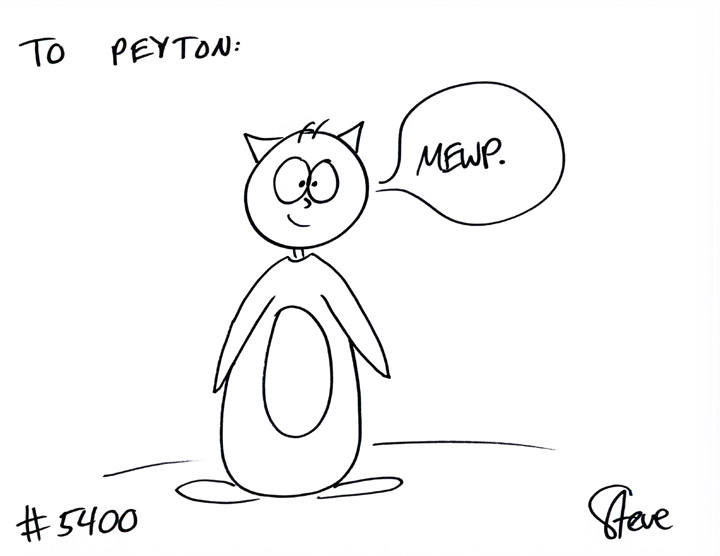 Cat #5400 Posted on May 24, 2012 Jerry GIFTED a cat to Peyton. He wanted a cat in a penguin costume! Mewp.