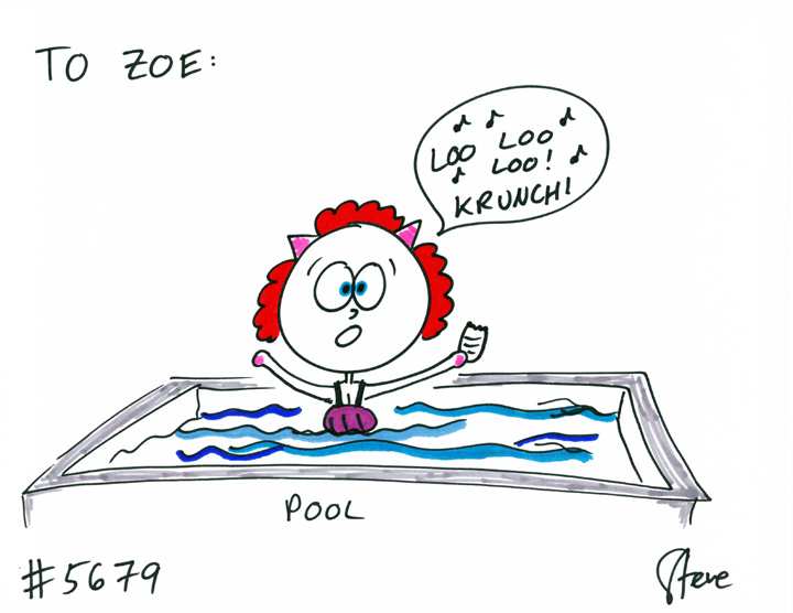 Cat #5679 Posted on June 4, 2012 Zoe GIFTED a cat to Zoe. She wanted a red-headed cat that sings, swims, and eat pickles!
