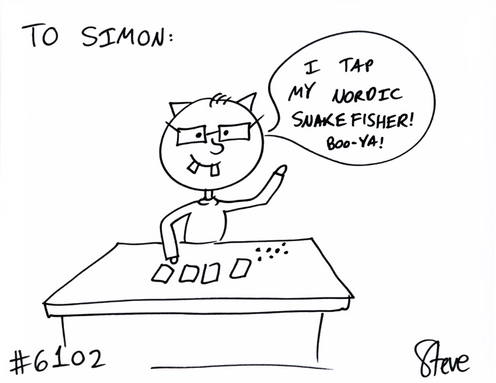 Cat #6102 Posted on June 15, 2012 Cameron GIFTED a cat to Simon. This nerdy cat is playing Magic the Gathering!