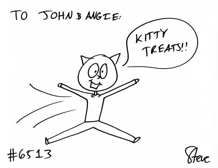 Cat #6513 Posted on June 27, 2012 John & Angie wanted a cat named Speedy that likes to ambush you to have his kitty treats!
