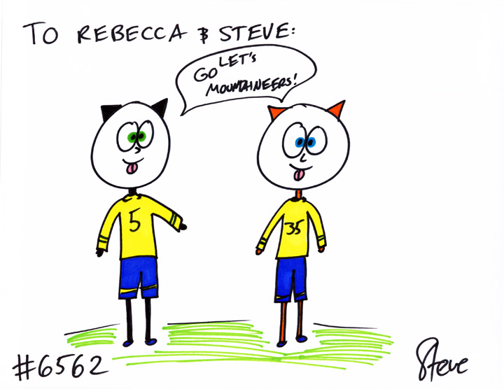 Rebecca & Steve wanted two cats in blue and yellow jerseys, numbers 5 and 35! They’re cheering for the West Virginia Mountaineers!