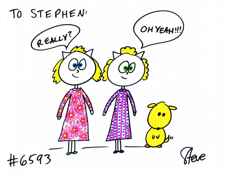 Cat #6593 Posted on June 29, 2012 Stephen wanted two blonde girl cats with their dog! They’re saying, “Really? Oh yeah!”