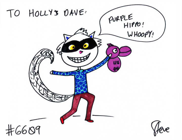 Cat #6609 Posted on July 2, 2012 Holly and Dave wanted their cat, “Boris the Amazing Wondercat!” He loves his purple hippo!