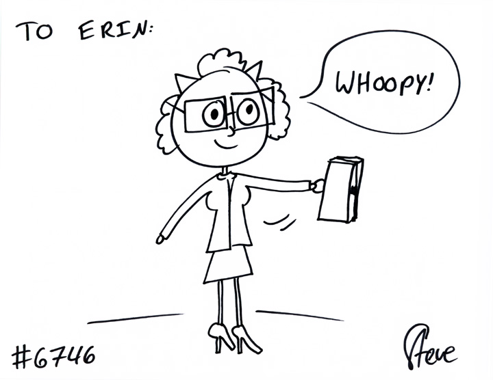 Cat #6746 Posted on July 5, 2012 Christine GIFTED a cat to Erin! She wanted an executive cat wearing high heels, big glasses, and carrying a briefcase.