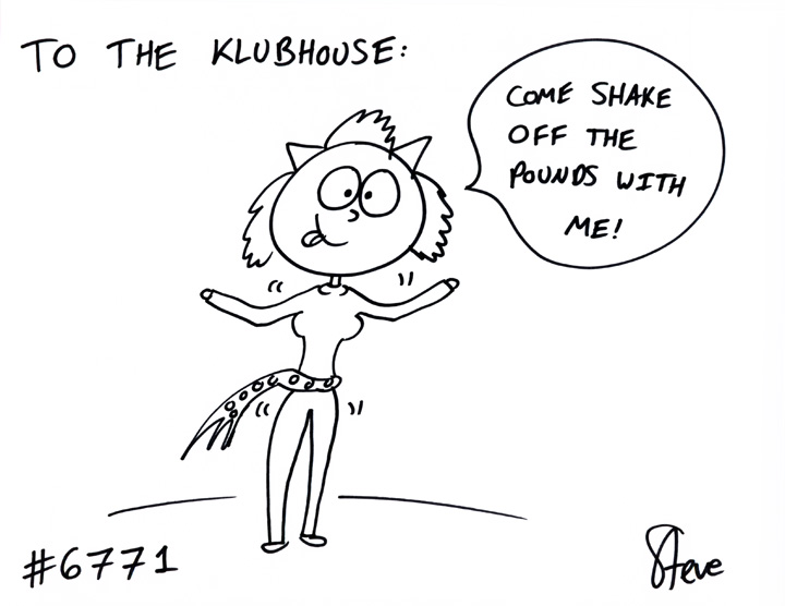 Marissa GIFTED a cat to The Klubhouse. She wanted a cat wearing a hip scarf doing Zumba saying, “Come shake off the pounds with me!”