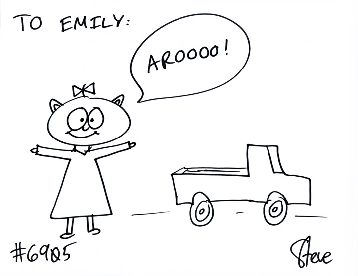 Cat #6905 Posted on July 10, 2012 Chase GIFTED a cat to Emily! He wanted a Hello Kitty cat that loves lifted trucks and says, “Aroooo!”