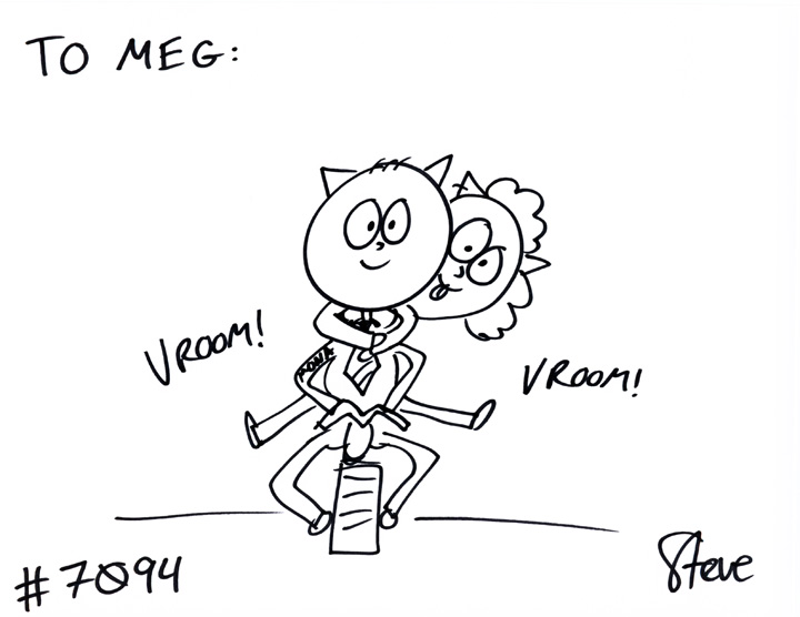 Jeff GIFTED a cat to Meg! He wanted a banker cat in a suit, riding a motorcycle with his lady friend on the back!