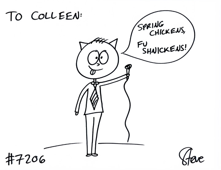 Colleen wanted a cat standing on a stage, performing slam poetry!