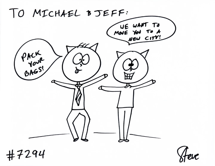 Michael & Jeff wanted two CEO cats who own a Chicago based start-up, urbanbound.com! They’re helping move other cats to new cities!