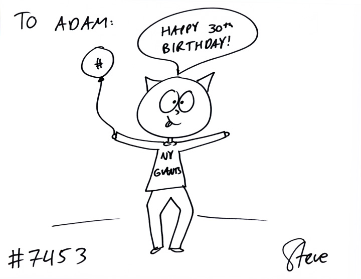 Cat #7453 Posted on July 25, 2012 Stephen GIFTED a cat to Adam. He wanted a cat in a New York Giant’s shirt, wishing Adam a Happy 30th Birthday!