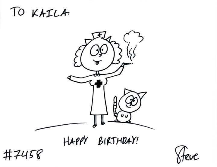 Donald GIFTED a cat to Kaila. He wanted a nurse cat smoking with a pet cat. Happy Birthday!
