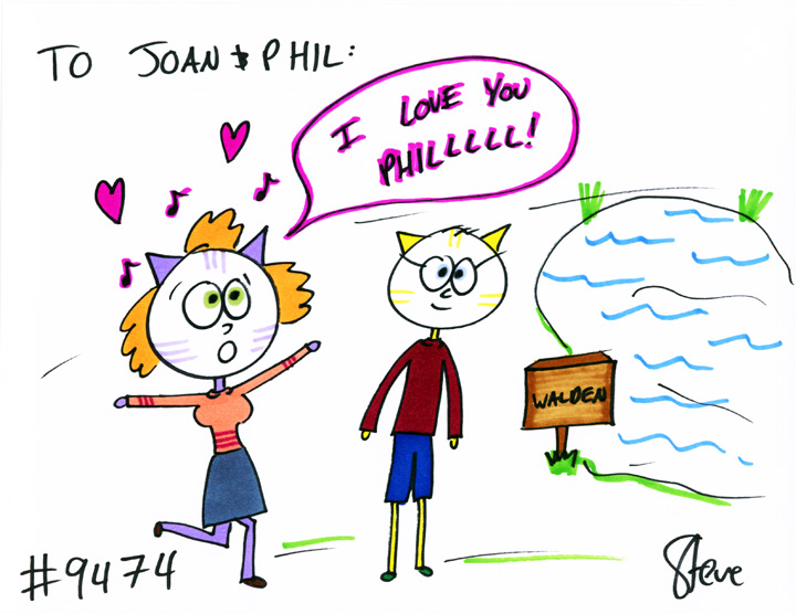 Cat #9474 Posted on November 22, 2012 Matthew GIFTED a cat to Joan and Phil. He wanted an opera singer cat singing to Phil about her love at Walden Pond!