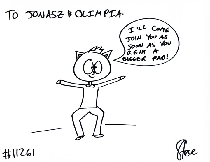Cat #11261 Posted on January 25, 2013 Jonasz & Olimpia wanted a cat telling Olimpia that he’ll join her when they get a bigger apartment!