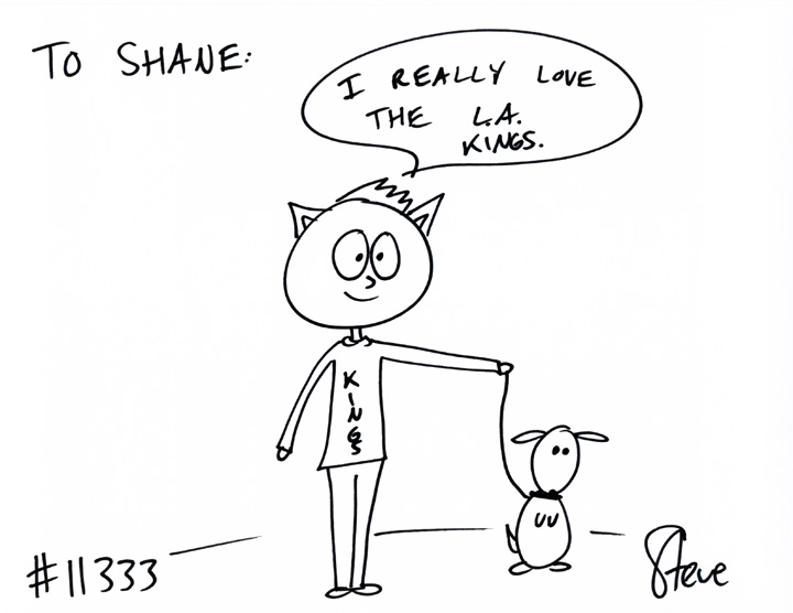 Cat #11333 Posted on January 30, 2013 Shannon GIFTED a cat to Shane! She wanted a cat that really loves the LA Kings and walking his dog.