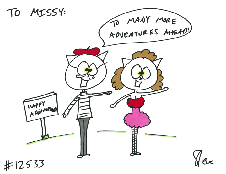 Matthew GIFTED a cat to Missy! He wanted a guy and girl cat engaging in some riveting world travel! Happy Anniversary! Whoopy!
