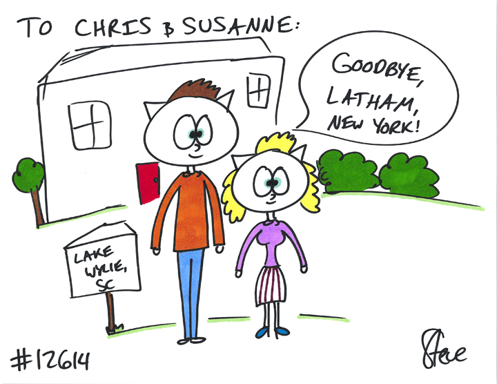 Brittany gIFTED a cat to Chris and Susanne! She wanted a boy and girl cat standing in front of their new house in Lake Wylie saying goodbye to Latham!