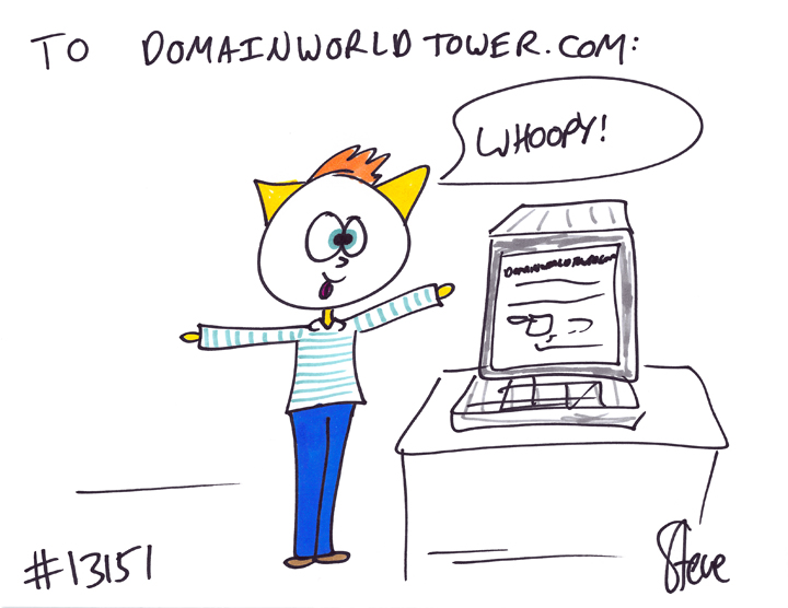 Rollande wanted a cat visiting her website, DomainWorldTower.com!