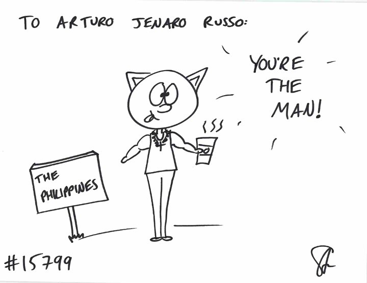 Cat #15799 Posted on February 5, 2014 Janelly GIFTED a cat to Arturo Jenaro Russo! He wanted a cat who loves Starbucks and the Phillippines!
