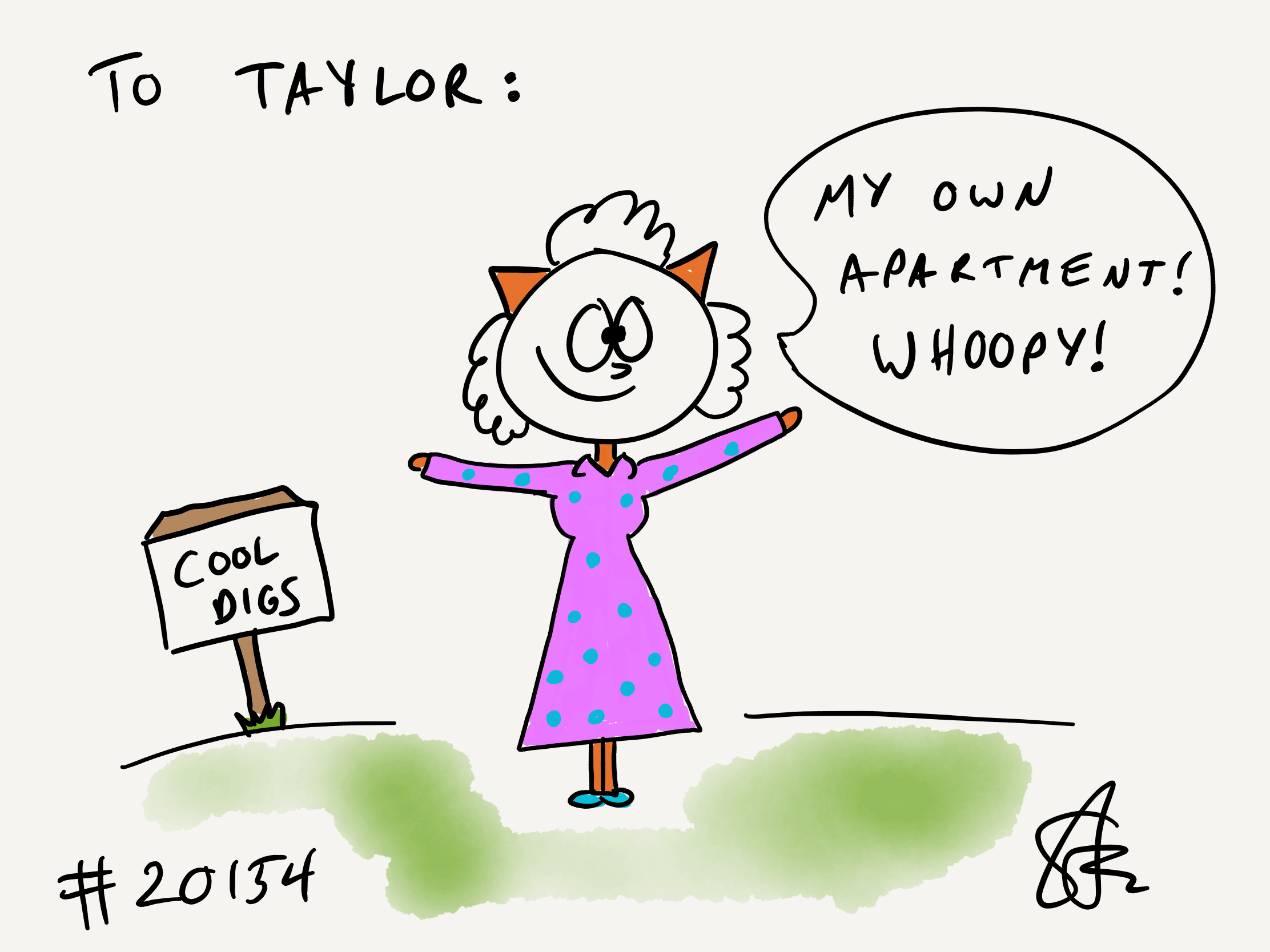 Cat #20154 Posted on January 27, 2019 Taylor wanted a cool cat moving into her very own apartment! Whoopy!