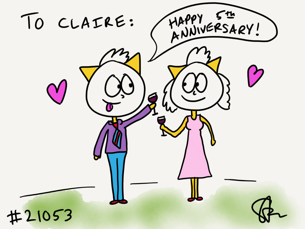 Cat #21053 Posted on July 1, 2021 Robert GIFTED a cat to Claire! He wanted two cats celebrating their 5th anniversary. Whoopy!