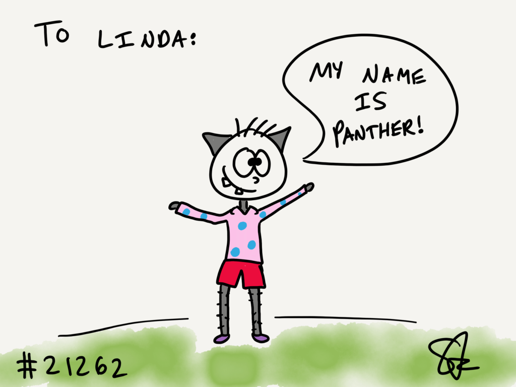 Linda wanted a cat that’s all black. He’s a panther! Whoopy!