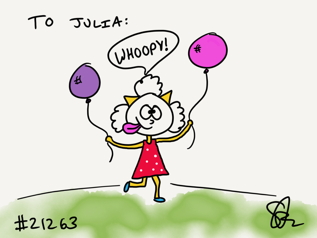 Cat #21263 Posted on January 19, 2022 Karen GIFTED a cat to Julia! She wanted a cat celebrating her 6th birthday with balloons. Whoopy!