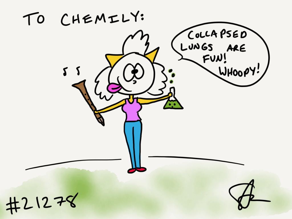 Cat #21278 Posted on February 3, 2022 Taylor GIFTED a cat to Chemily! She wanted a cat with a clarinet and science stuff, talking about a collapsed lung! Whoopy!