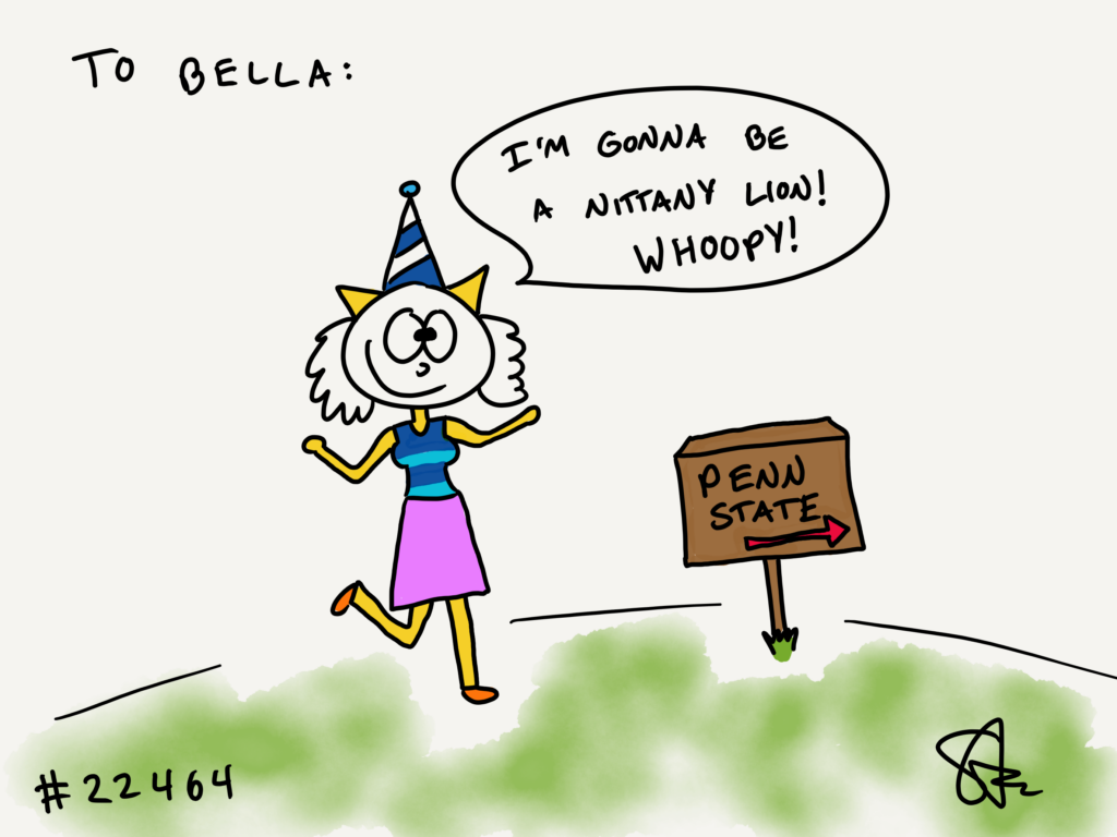 Greg GIFTED a cat to Bella! He wanted a cat celebrating her birthday who is happy to be a Nittany Lion at Penn State! Whoopy!