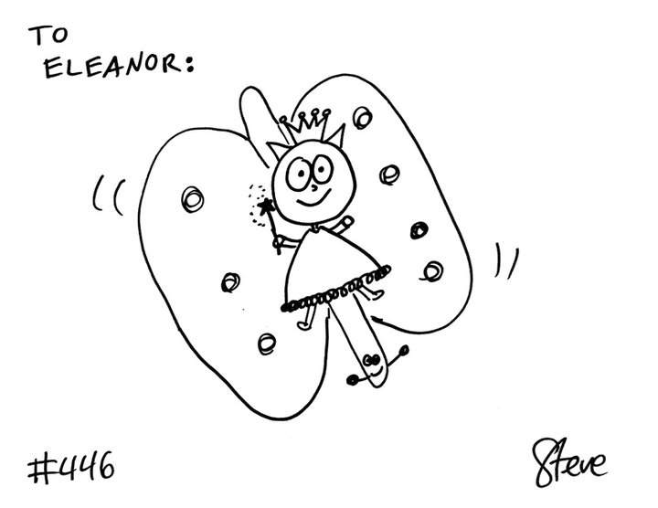 Cat #446 Posted on December 9, 2010 Michael GIFTED a cat to Eleanor. He wanted a little girl fairy cat wearing a princess dress riding on a butterfly.