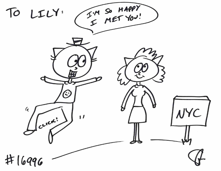 Cat #16996 Posted on June 3, 2014 Matt GIFTED a cat to Lily! He wanted a guy cat expressing how happy he is to have met a girl cat in New York City!