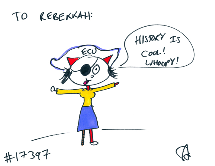 Valerie GIFTED a cat to Rebekkah! She wanted a cat dressed up like the East Carolina University pirate teaching a history class!