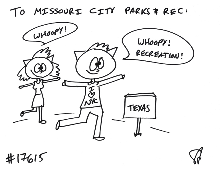 Bri Bri, Bri Bri Bri GIFTED a cat to Missouri City Parks and Rec! He wanted a cat from New York in Texas enjoying a recreational activity with his friends!
