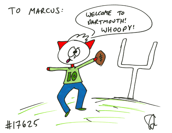 Grandma GIFTED a cat to Marcus! She wanted a cat playing football at Dartmouth College!