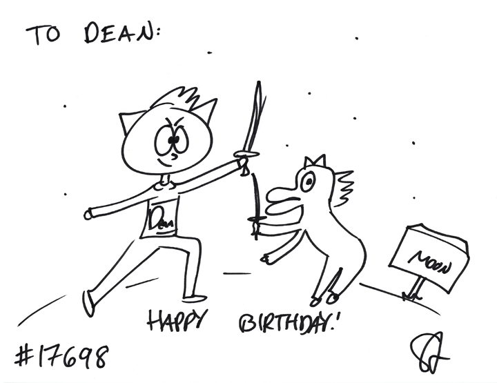 Cat #17698 Posted on October 20, 2014 Rachel GIFTED a cat to Dean! She wanted a cat sword fighting a My Little Pony in space!