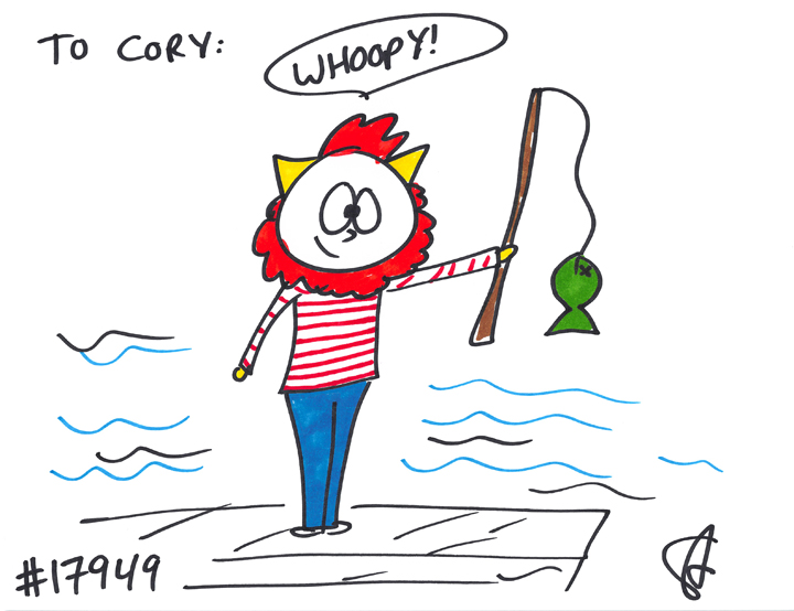 Cat #17949 Posted on November 25, 2014 Megan GIFTED a cat to Cory! She wanted a boy cat that just loves fishing! He has a red beard! Whoopy!