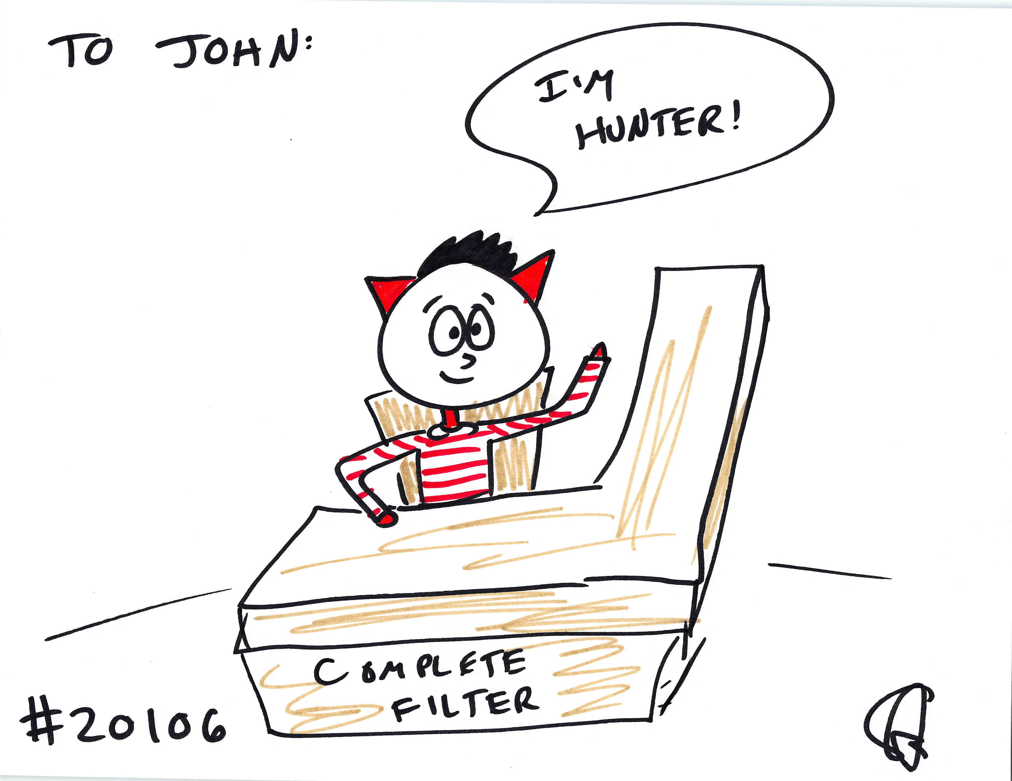Jon wanted a cat named Hunter working at his L-shaped desk!